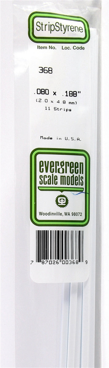 Evergreen Scale Models 368 24" Strip Pack .080" x .188" (11)